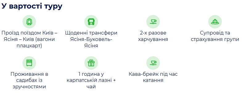 - Бонус для приємного релаксу: 1 година відпочинку у лазні після активного катання